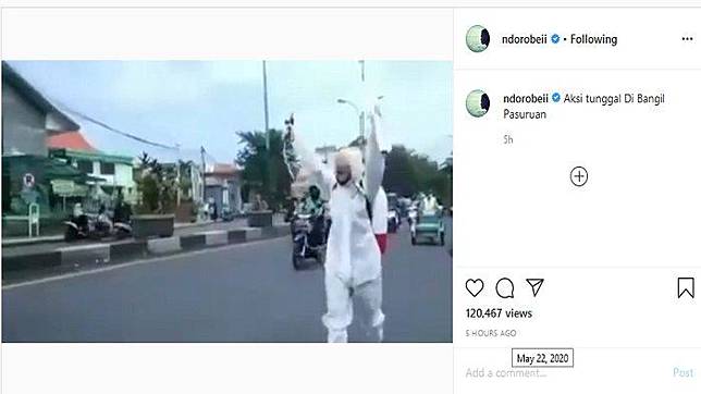 Disebutkan, aksi tersebut dilakukan seorang diri di Bangil, Pasuruan, Jawa Timur. Pria tersebut berteriak menyindir masyarakat yang tetap nekat keluar rumah di tengah pandemi Virus Corona.